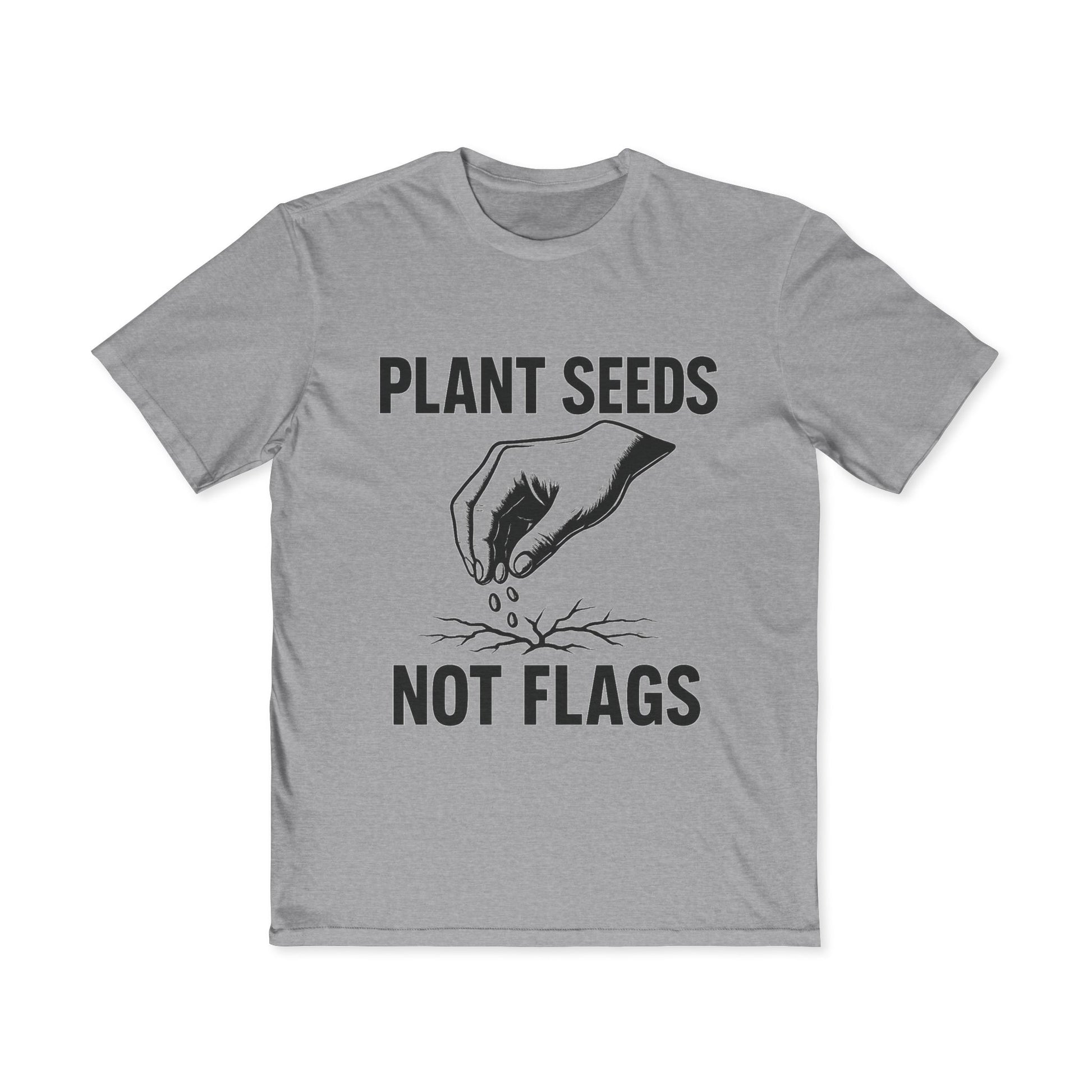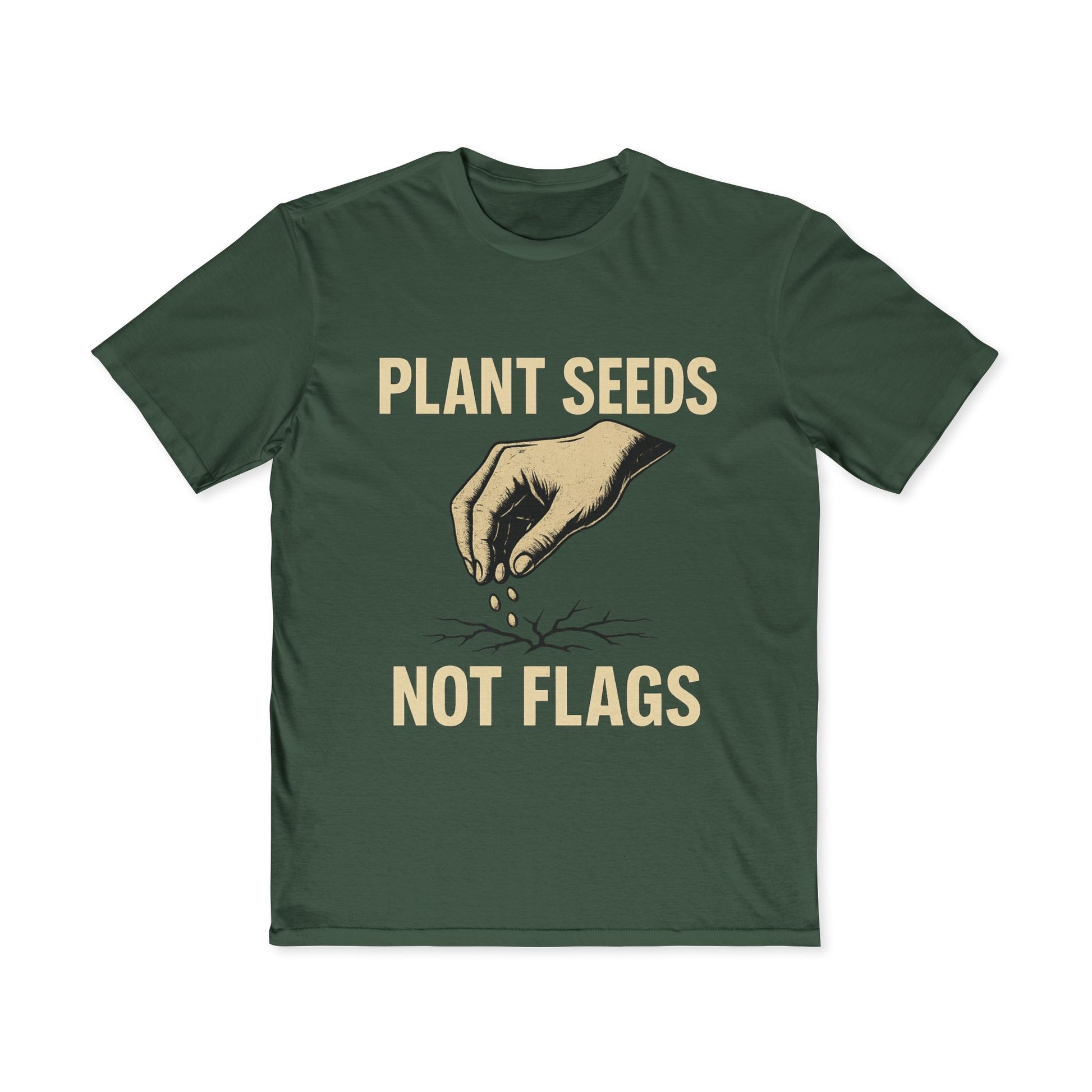 This men's tee features a bold hand planting seeds, a quiet act of defiance against division and conquest. It’s a message for those who believe in action over allegiance — in building, not boasting.