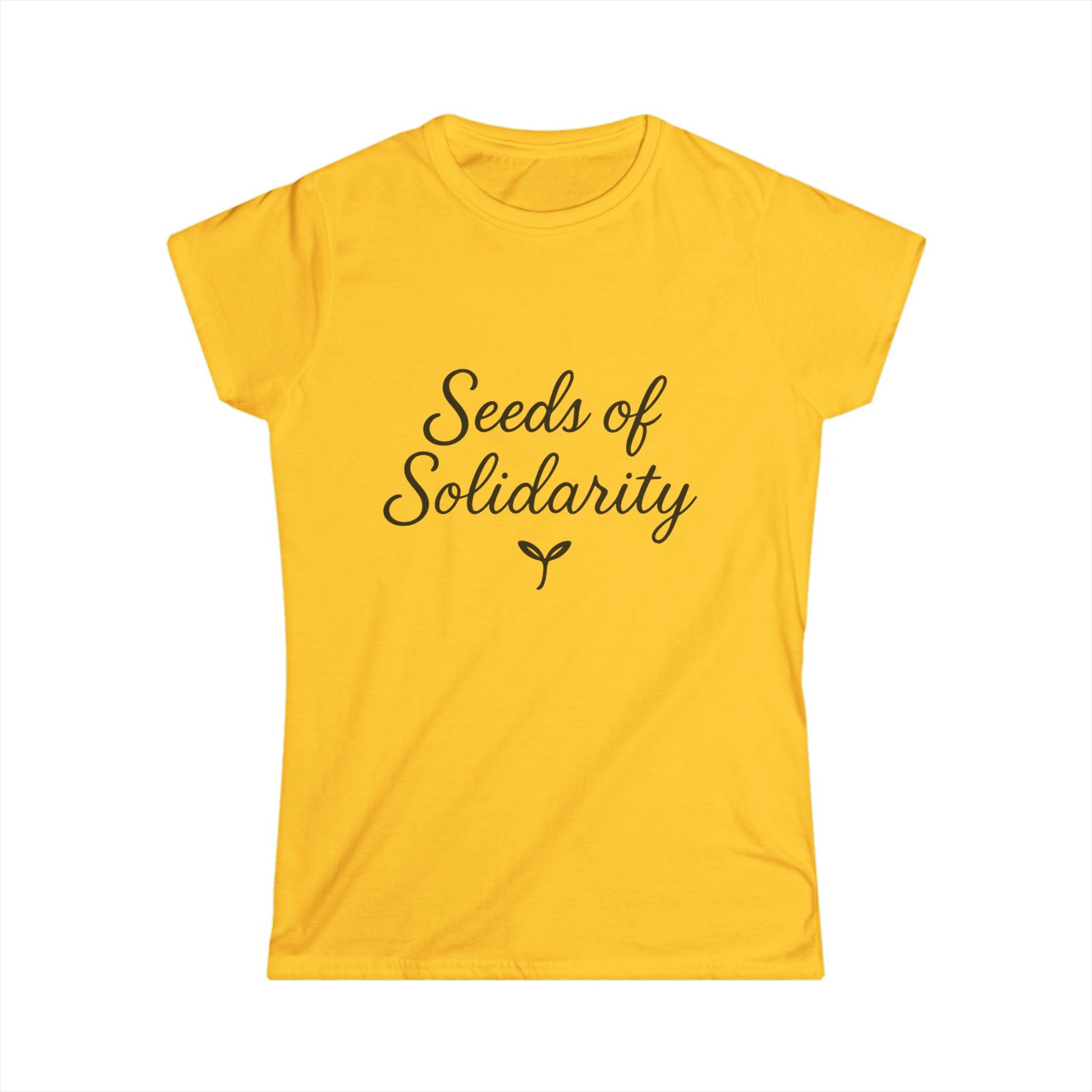 Soft strength meets quiet resistance in our Seeds of Solidarity women’s tee. Featuring a graceful script across the chest and a minimalist sprout design, this shirt is a subtle nod to the power of planting change—one act, one voice, one generation at a time.
